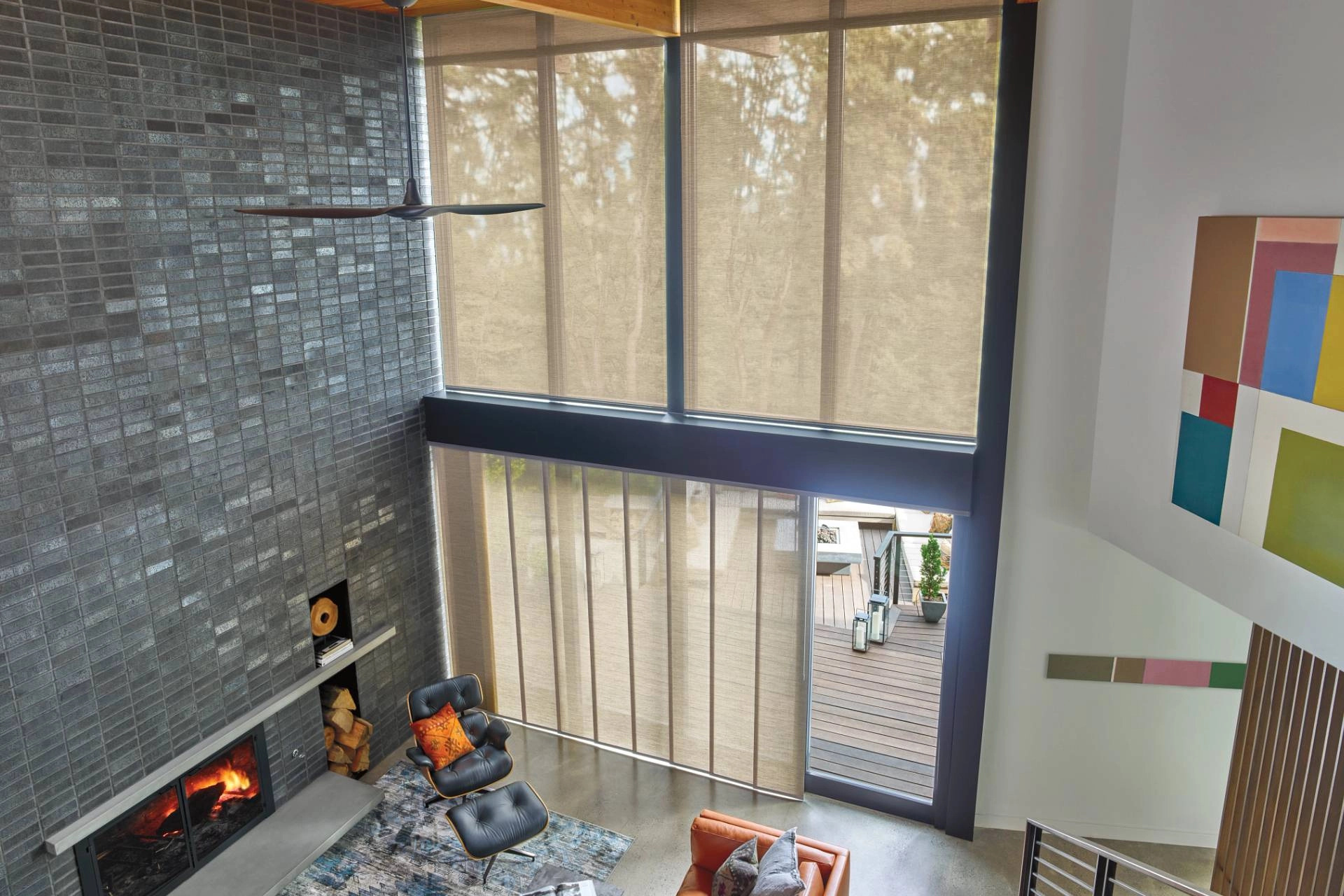 PowerView® Automation is an innovative system with many benefits, including security, safety, and convenience. One of the most important advantages is the lack of unsightly cords and wands, which will simplify the overall look and feel of your oversized windows. Another great perk? By motorizing your oversized window treatments, you’re able to adjust them without needing to move a large, heavy shade or blind manually.