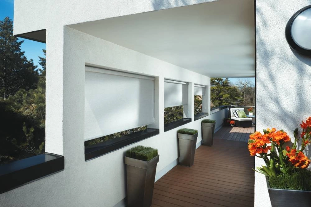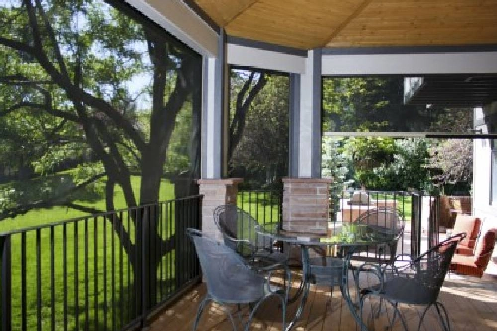 Designed to block the sun and bugs. These outdoor roller shades feature a zipper system inside track that allows the screen to have a 4-sided seal. This seal, combined with their motorized operation, make these shades a top choice for any outdoor location.