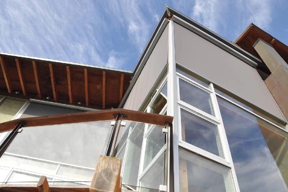 These exterior shades are made for larger spaces. You can choose to operate these shades manually or motorize them. You also have the option between a cable guide or a sidetrack for stabilization.